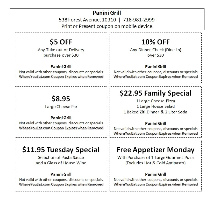 Nestled in Staten Island, Panini Grill is a haven for lovers of Italian cuisine, offering an extensive menu that spans from delectable appetizers like Arancini Di Riso and Baked Clams to mouth-watering entrees such as Melanzane Parmigiana and Pollo Cacciatore. Their pasta options like Pasta Rustica and Gnocchi al Pesto are sure to satisfy any carb craving. Customers rave about the friendly service, inviting atmosphere, and the diverse options on their gluten and dairy-free menu. Live music on Friday nights adds a special touch to the dining experience. With a diverse range of offerings, Panini Grill is a must-visit for those seeking authentic Italian flavors in a warm and welcoming setting.